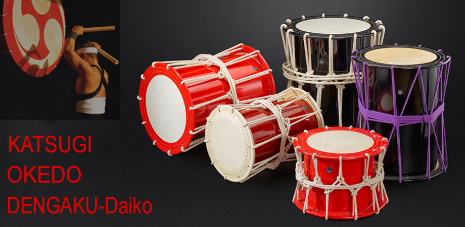 Die kleine DENGAKU-Taiko ist ein echtes Fliegengewicht. Bauweise und Material sind die gleichen wie die der Katsugi-Daiko. Mit nur ca. 3kg Gewicht ermöglicht sie dem Trommler allerdings fast unbegrenzte Mobilität und Flexibilität, besonders bei tänzerischen Elementen. So wurde diese Taiko auch ursprünglich oft beim traditionellen Dengaku (田楽) Tänzen eingesetzt, einer typischen Darbietung der Heian Zeit. In knallrot, gespannt mit weißem Baumwollseil setzt sie auch optisch einen starken Akzent und ist mit Schultergurt beidseitig oder auch als Handtrommel bespielbar.